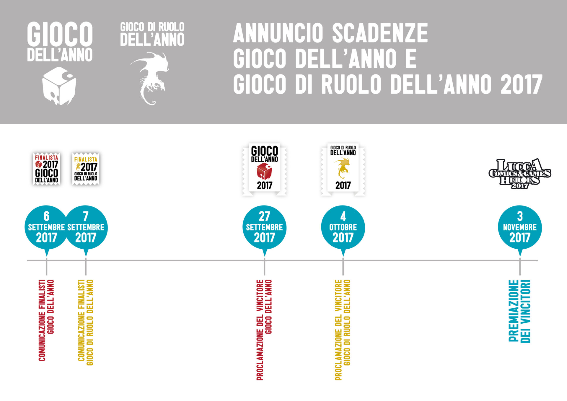 Nell’infografica troverete le date relative agli appuntamenti importanti che coninvolgeranno il Gioco dell’Anno e il Gioco di Ruolo dell’Anno.